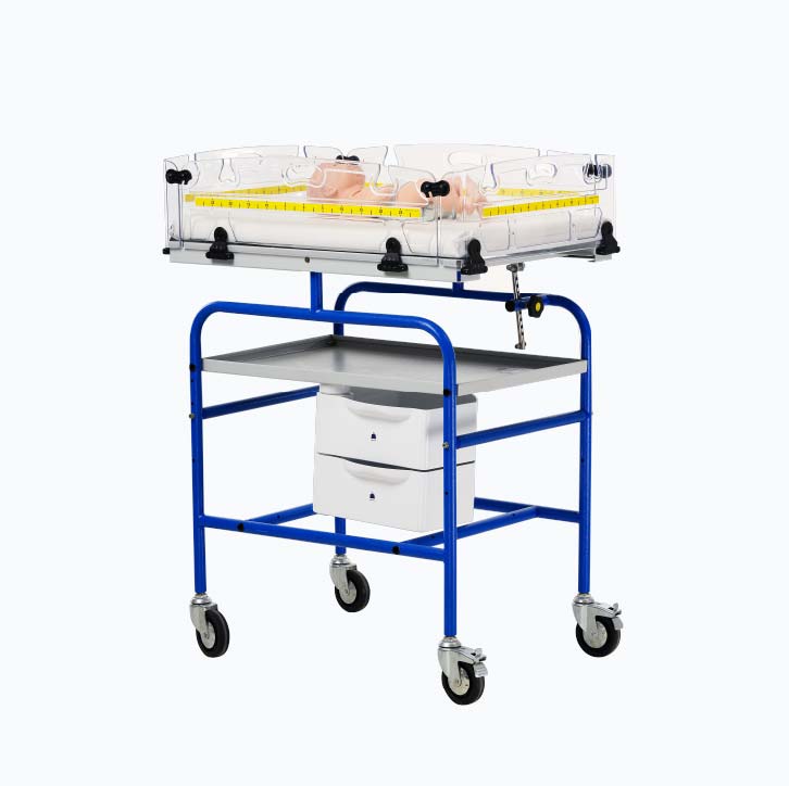 Designed with an integrated approach, the Infant Observation Trolley supports neonatal observation and transportation in a single, streamlined solution. Its clinical design enables caregivers to manage infants safely and efficiently within neonatal care environments.