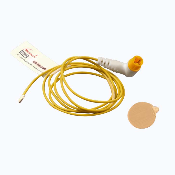 The Skin Temperature Probe is designed to provide accurate, real-time monitoring of an infant’s skin temperature, enabling effective thermal regulation in neonatal care. By continuously sensing temperature changes, it supports precise control of incubators and radiant warmers, helping maintain the baby’s body temperature within safe limits and reducing the risk of hypothermia or overheating.