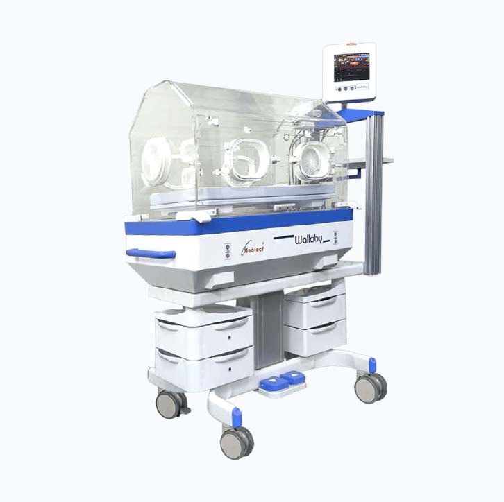 nice 3010 – Wallaby is a next-generation neonatal care solution designed to provide a stable, thermally controlled, and nurturing environment for critically ill and premature newborn. Built with advanced temperature regulation, optimal humidity control, and caregiver-friendly access, it supports superior clinical outcomes while ensuring comfort, safety, and reliability in the NICU.